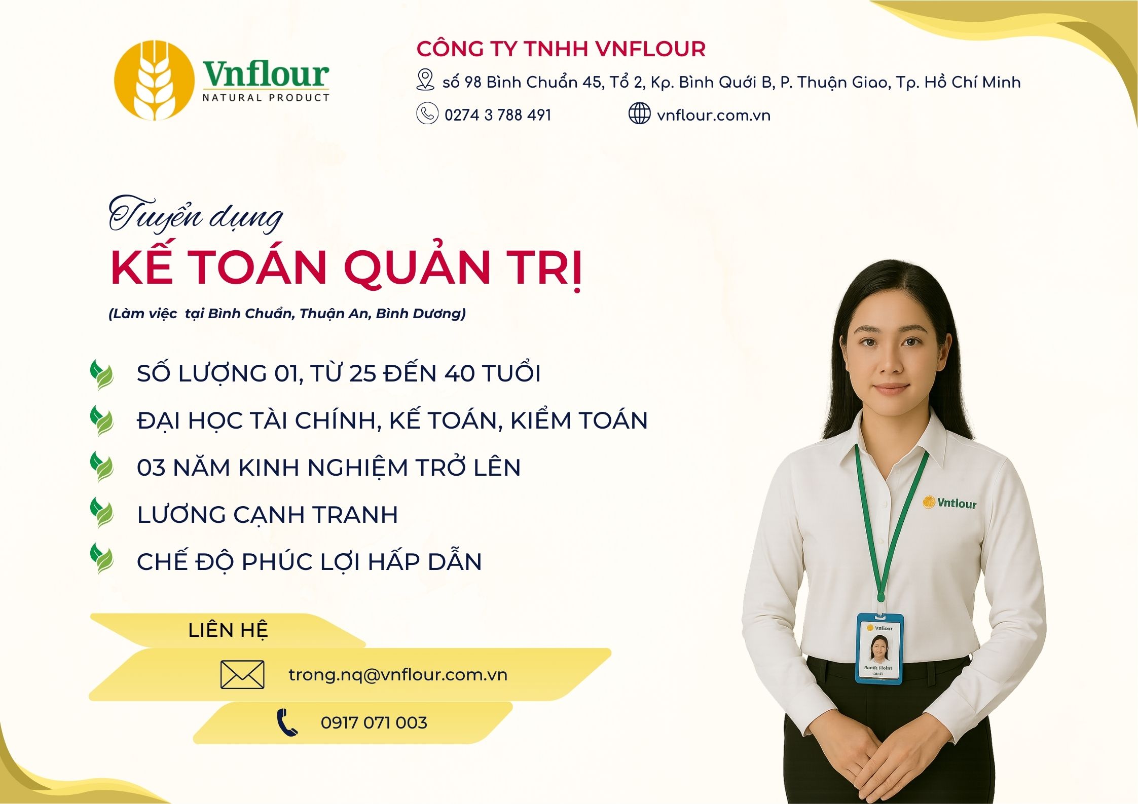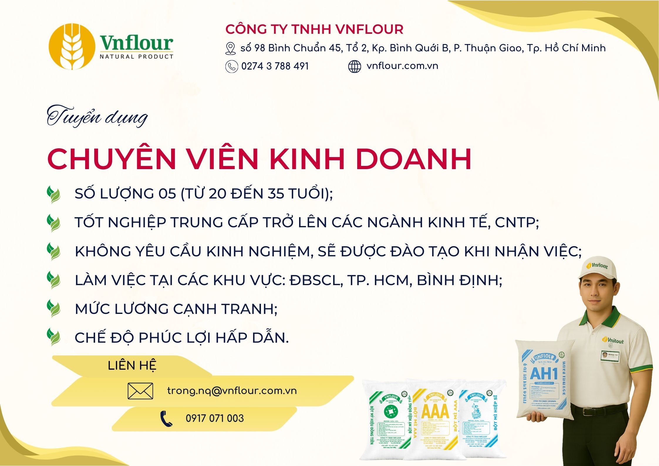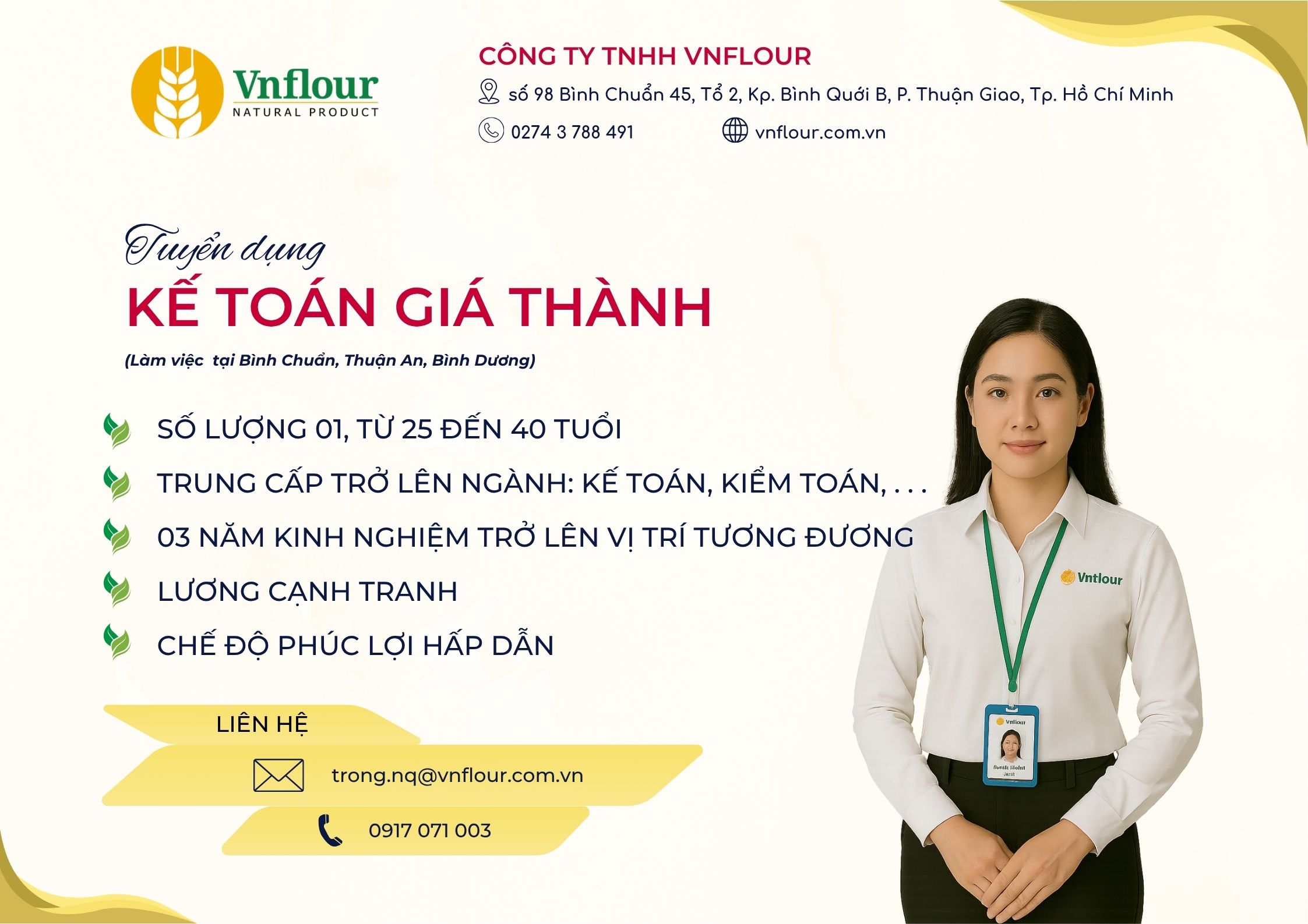 As one of the leading companies in the flour production industry in Vietnam, we are committed to providing a professional working environment, creating favorable conditions for you to apply your expertise, accumulate practical experience, and develop your career path alongside the company's growth.