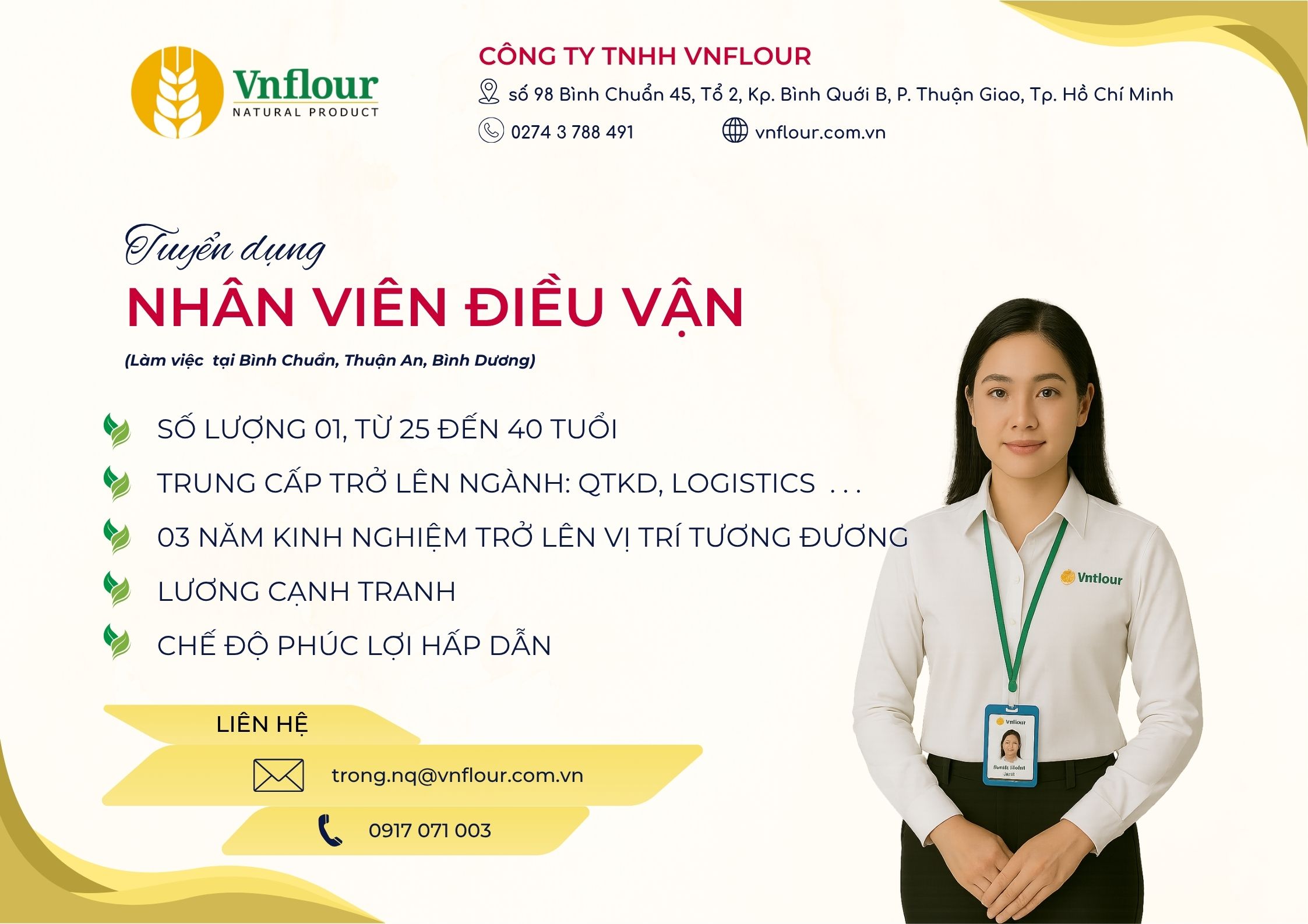 | 30/10/2025 | Nhân viên điều vận | Bình Dương | Details |